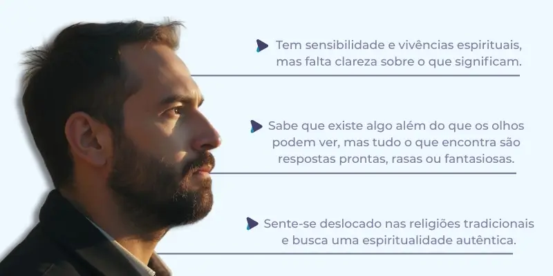 Agora é sua vez de entender, com profundidade e base sólida, o que existe além do mundo visível para acelerar sua Evolução Espiritual em tempo recorde.